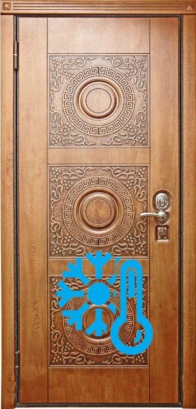Металлические двери с терморазрывом в Невьянске состоят из двух частей, стянутых болтами, между которыми проложен материал с низкой теплопроводностью. Как правило это тонкое пробковое полотно. Таким образом, во входной двери отсутствует мостик холода, наружная и внутренняя часть двери между собой не соприкасаются, а значит, дверь не промерзает. Наполнение таких дверей тоже может быть многослойным, что создает дополнительную преграду для проникновения в дом холода.
