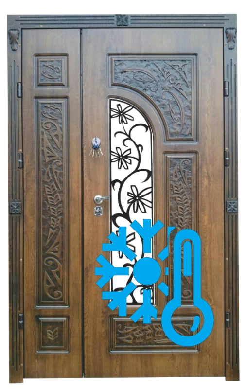 С внешней стороны такую дверь можно отделать как порошково-полимерным покрытием без затей, так и массивом, натуральным шпоном, атмосферостойким МДФ. Терморазрыв применяется при изготовлении парадных дверей, с витражом, ковкой и стеклом. Есть еще одна область применения дверей с терморазрывом. Они, очень хорошо поглощают шум. Поэтому такие двери хорошо зарекомендовали себя в качестве дверей для квартир, находящихся на первом этаже, или рядом с лифтами, то есть в шумных местах.