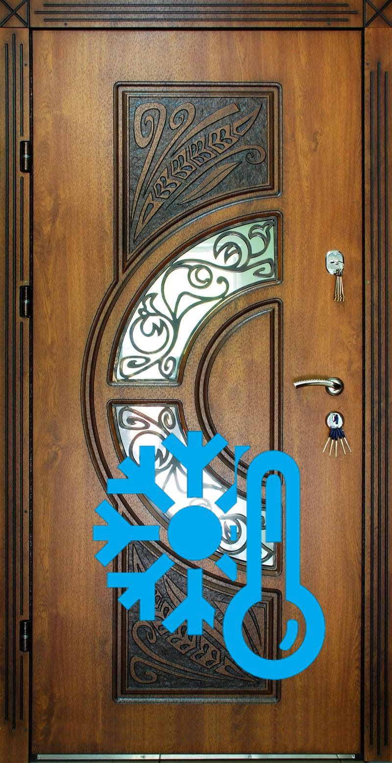С внешней стороны такую дверь можно отделать как порошково-полимерным покрытием без затей, так и массивом, натуральным шпоном, атмосферостойким МДФ. Терморазрыв применяется при изготовлении парадных дверей, с витражом, ковкой и стеклом. Есть еще одна область применения дверей с терморазрывом. Они, очень хорошо поглощают шум. Поэтому такие двери хорошо зарекомендовали себя в качестве дверей для квартир, находящихся на первом этаже, или рядом с лифтами, то есть в шумных местах.