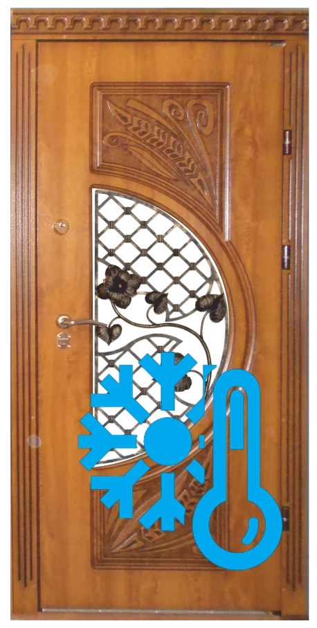 С внешней стороны такую дверь можно отделать как порошково-полимерным покрытием без затей, так и массивом, натуральным шпоном, атмосферостойким МДФ. Терморазрыв применяется при изготовлении парадных дверей, с витражом, ковкой и стеклом. Есть еще одна область применения дверей с терморазрывом. Они, очень хорошо поглощают шум. Поэтому такие двери хорошо зарекомендовали себя в качестве дверей для квартир, находящихся на первом этаже, или рядом с лифтами, то есть в шумных местах.