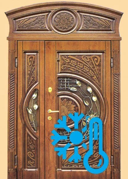 С внешней стороны такую дверь можно отделать как порошково-полимерным покрытием без затей, так и массивом, натуральным шпоном, атмосферостойким МДФ. Терморазрыв применяется при изготовлении парадных дверей, с витражом, ковкой и стеклом. Есть еще одна область применения дверей с терморазрывом. Они, очень хорошо поглощают шум. Поэтому такие двери хорошо зарекомендовали себя в качестве дверей для квартир, находящихся на первом этаже, или рядом с лифтами, то есть в шумных местах.