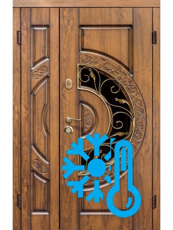С внешней стороны такую дверь можно отделать как порошково-полимерным покрытием без затей, так и массивом, натуральным шпоном, атмосферостойким МДФ. Терморазрыв применяется при изготовлении парадных дверей, с витражом, ковкой и стеклом. Есть еще одна область применения дверей с терморазрывом. Они, очень хорошо поглощают шум. Поэтому такие двери хорошо зарекомендовали себя в качестве дверей для квартир, находящихся на первом этаже, или рядом с лифтами, то есть в шумных местах.
