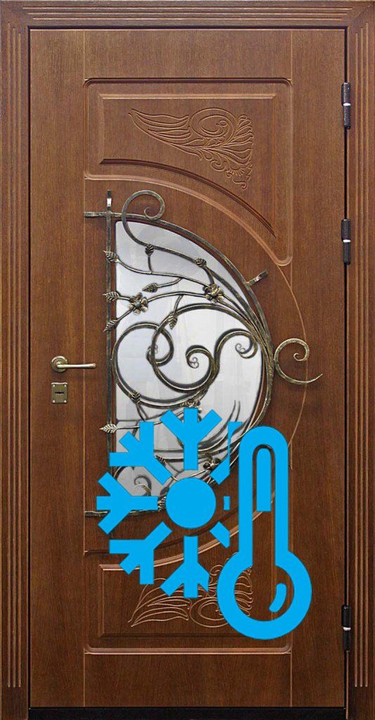 С внешней стороны такую дверь можно отделать как порошково-полимерным покрытием без затей, так и массивом, натуральным шпоном, атмосферостойким МДФ. Терморазрыв применяется при изготовлении парадных дверей, с витражом, ковкой и стеклом. Есть еще одна область применения дверей с терморазрывом. Они, очень хорошо поглощают шум. Поэтому такие двери хорошо зарекомендовали себя в качестве дверей для квартир, находящихся на первом этаже, или рядом с лифтами, то есть в шумных местах.