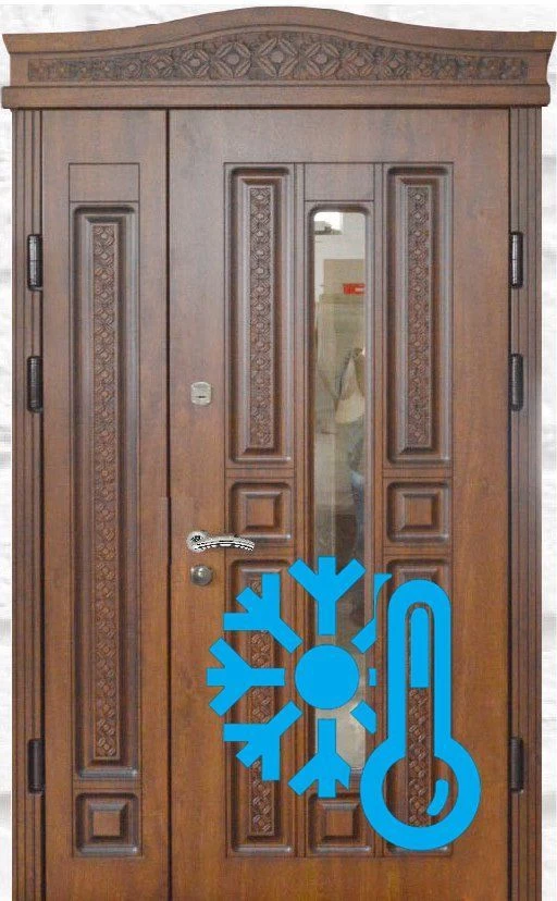 С внешней стороны такую дверь можно отделать как порошково-полимерным покрытием без затей, так и массивом, натуральным шпоном, атмосферостойким МДФ. Терморазрыв применяется при изготовлении парадных дверей, с витражом, ковкой и стеклом. Есть еще одна область применения дверей с терморазрывом. Они, очень хорошо поглощают шум. Поэтому такие двери хорошо зарекомендовали себя в качестве дверей для квартир, находящихся на первом этаже, или рядом с лифтами, то есть в шумных местах.
