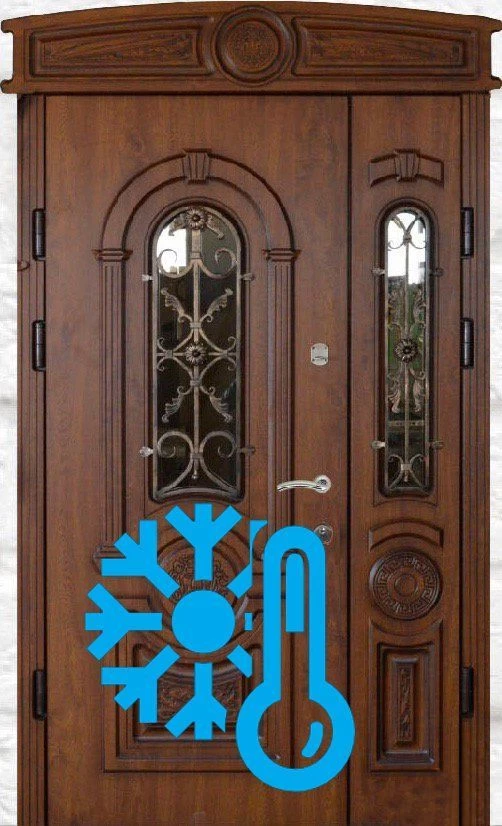 С внешней стороны такую дверь можно отделать как порошково-полимерным покрытием без затей, так и массивом, натуральным шпоном, атмосферостойким МДФ. Терморазрыв применяется при изготовлении парадных дверей, с витражом, ковкой и стеклом. Есть еще одна область применения дверей с терморазрывом. Они, очень хорошо поглощают шум. Поэтому такие двери хорошо зарекомендовали себя в качестве дверей для квартир, находящихся на первом этаже, или рядом с лифтами, то есть в шумных местах.