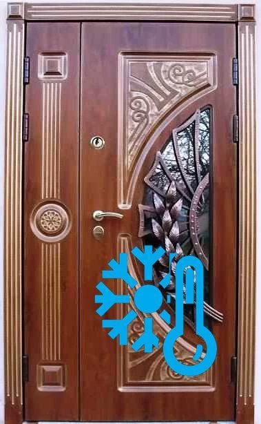 С внешней стороны такую дверь можно отделать как порошково-полимерным покрытием без затей, так и массивом, натуральным шпоном, атмосферостойким МДФ. Терморазрыв применяется при изготовлении парадных дверей, с витражом, ковкой и стеклом. Есть еще одна область применения дверей с терморазрывом. Они, очень хорошо поглощают шум. Поэтому такие двери хорошо зарекомендовали себя в качестве дверей для квартир, находящихся на первом этаже, или рядом с лифтами, то есть в шумных местах.