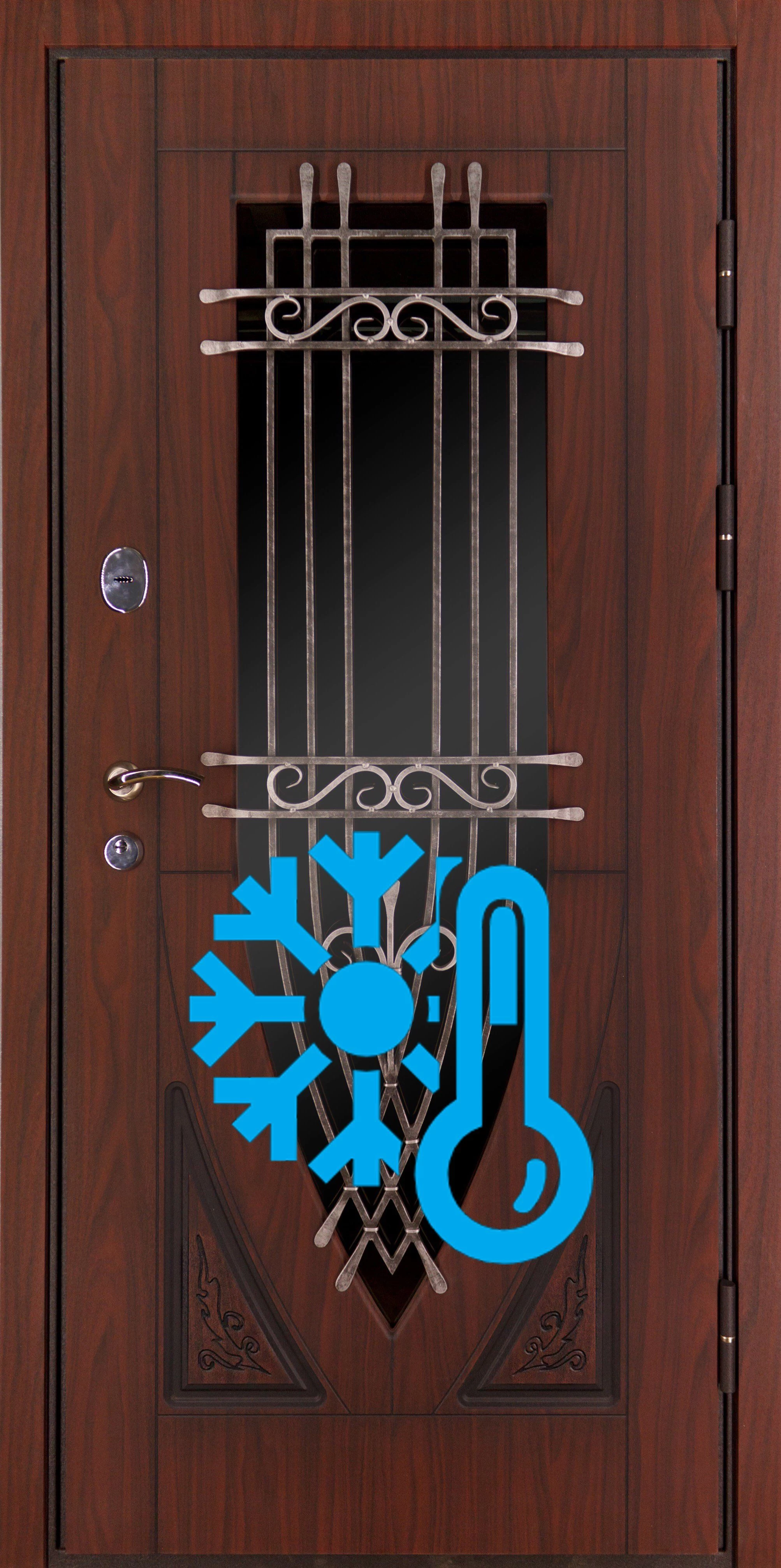 Как работают входные двери с терморазрывом. Известно, что передача тепла идет от теплого к холодному. Представим, что в доме +23, а на улице – 25. Металл дверей – материал с высокой теплопроводностью. Естественно, дверь быстро остывает и промерзает, либо начинает конденсировать.