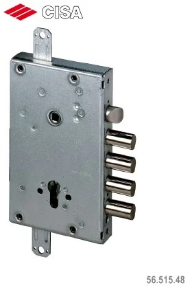 CISA REVOLUTION PRO 56.515.48 - Корпус замка врезного цилиндрового под ручку с защелкой, универсальный, без лицевой планкой и системой блокировки PRO при попытке взлома. Имеет особую систему шестереночного редуктора REVOLUTION, которое делает выдвижение ригелей плавным и бесшумным. Замок обладает высоким качеством и при выборе хорошего цилиндра эффективно защитит дом или офис от недоброжелателей. Данные замки рекомендуется устанавливать на дверь в паре с сувальдными замками. Cisa (Италия) - один из флагманов мирового производства замков и синоним качества и надёжности.