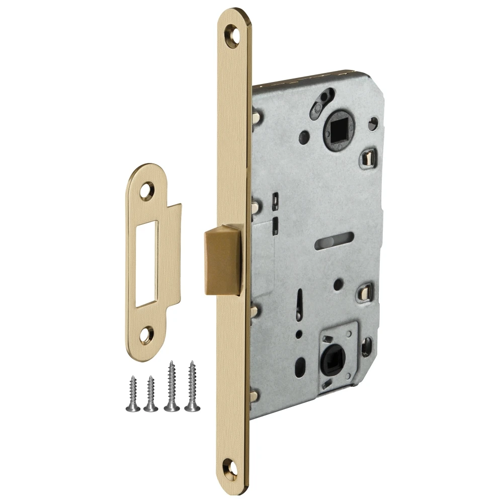 Размер бэксета - 50 мм. Размер межосевого расстояния - 96 мм. Цвет: сатин.золото. В комплектацию входят: ответная планка и крепежная фурнитура в цвет изделия.
