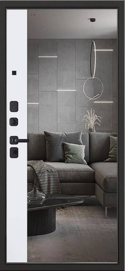 Надежная входная Дверь Scandi с зеркалом премиум класса по цене 45 431 руб. Большая толщина стали защитит от проникновения в ваш дом, квартиру или коттедж. Используется очень качественная фурнитура: замки, цилиндры, ручки, защелки. Покрытие и отделка двери изготовлено под внимательным контролем производителя. Дверь имеет долгий срок службы и гарантию.