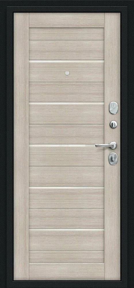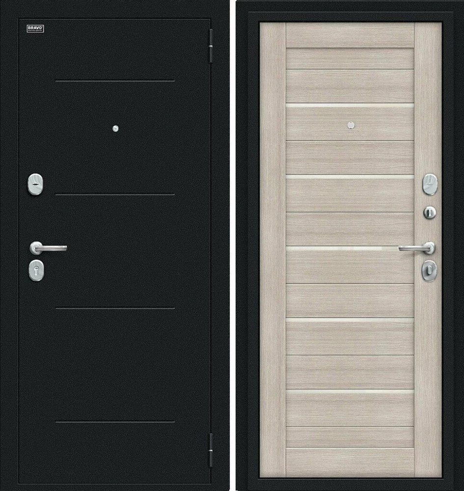 Надежная входная Браво Техно Kale Букле черное/Cappuccino Veralinga премиум класса по цене 34 381 руб. Большая толщина стали защитит от проникновения в ваш дом, квартиру или коттедж. Используется очень качественная фурнитура: замки, цилиндры, ручки, защелки. Покрытие и отделка двери изготовлено под внимательным контролем производителя. Дверь имеет долгий срок службы и гарантию.