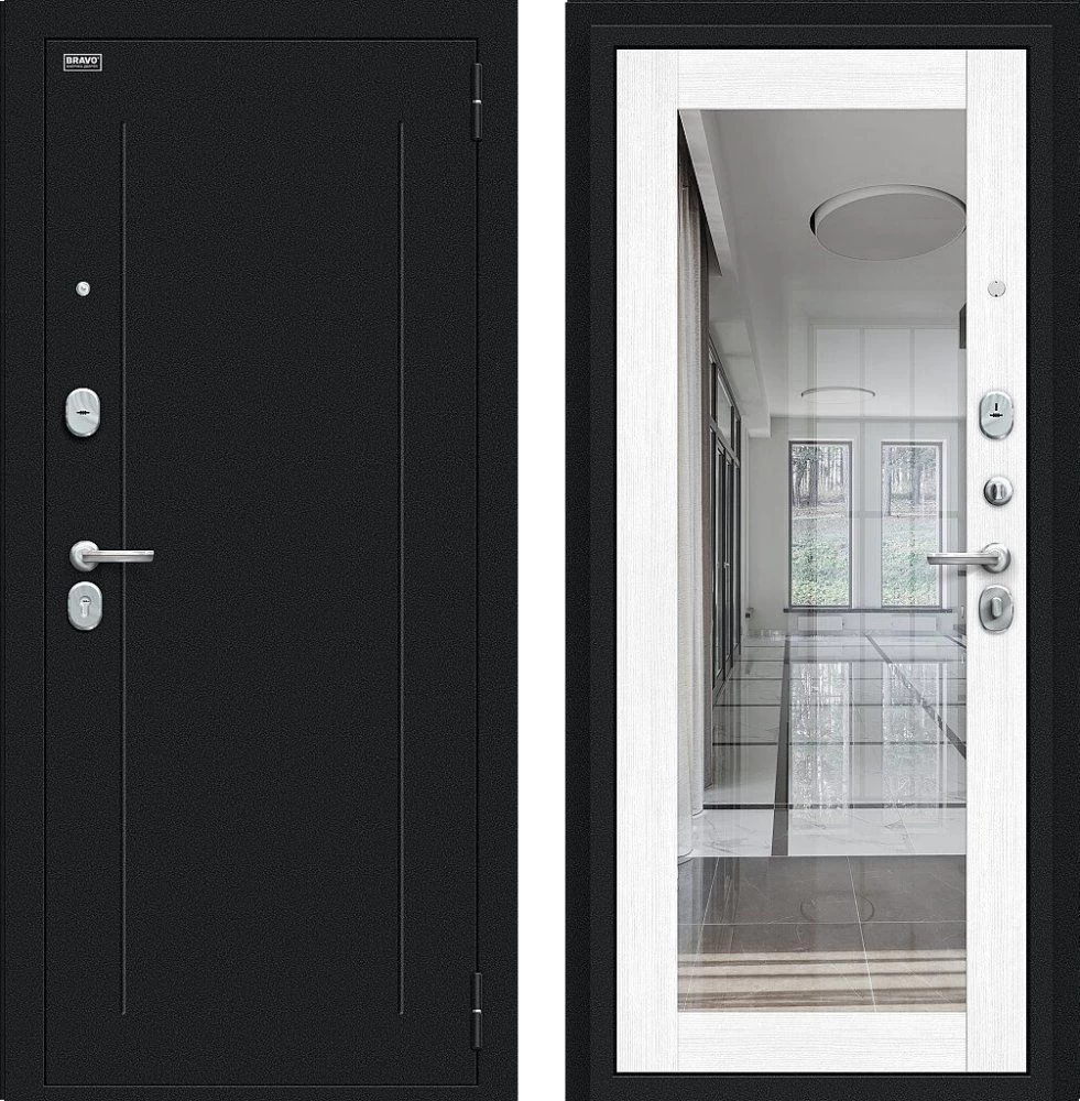 Надежная входная Дверь Браво Флэш Букле черное/Snow Melinga премиум класса по цене 33 081 руб. Большая толщина стали защитит от проникновения в ваш дом, квартиру или коттедж. Используется очень качественная фурнитура: замки, цилиндры, ручки, защелки. Покрытие и отделка двери изготовлено под внимательным контролем производителя. Дверь имеет долгий срок службы и гарантию.