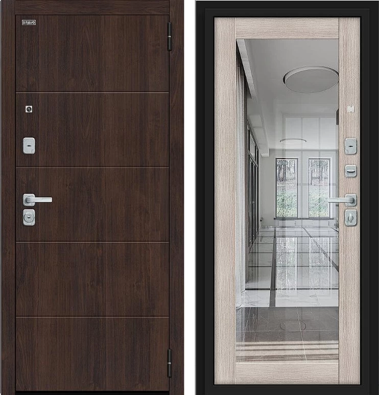 Надежная входная Дверь Браво Флэт/BChrome Almon/Cappuccino Melinga премиум класса по цене 42 531 руб. Большая толщина стали защитит от проникновения в ваш дом, квартиру или коттедж. Используется очень качественная фурнитура: замки, цилиндры, ручки, защелки. Покрытие и отделка двери изготовлено под внимательным контролем производителя. Дверь имеет долгий срок службы и гарантию.