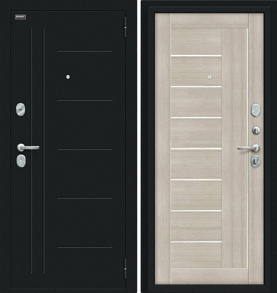 Надежная входная Дверь Браво Проф Букле черное/Cappuccino Veralinga премиум класса по цене 33 081 руб. Большая толщина стали защитит от проникновения в ваш дом, квартиру или коттедж. Используется очень качественная фурнитура: замки, цилиндры, ручки, защелки. Покрытие и отделка двери изготовлено под внимательным контролем производителя. Дверь имеет долгий срок службы и гарантию.