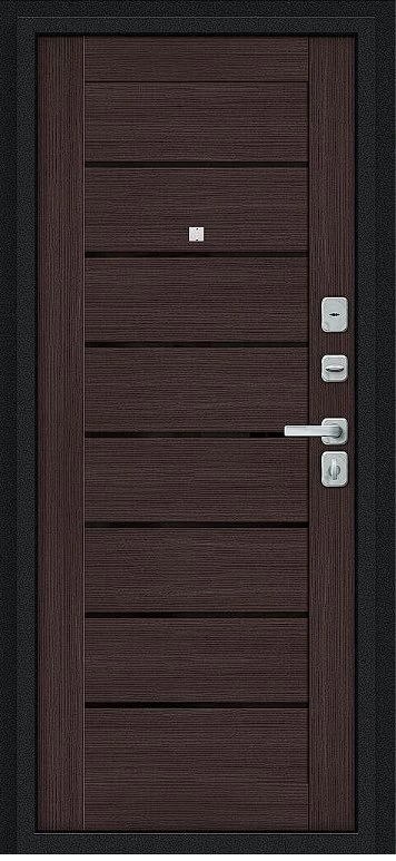 Надежная входная Дверь Браво Техно/BChrome Букле черное/Wenge Melinga премиум класса по цене 33 231 руб. Большая толщина стали защитит от проникновения в ваш дом, квартиру или коттедж. Используется очень качественная фурнитура: замки, цилиндры, ручки, защелки. Покрытие и отделка двери изготовлено под внимательным контролем производителя. Дверь имеет долгий срок службы и гарантию.