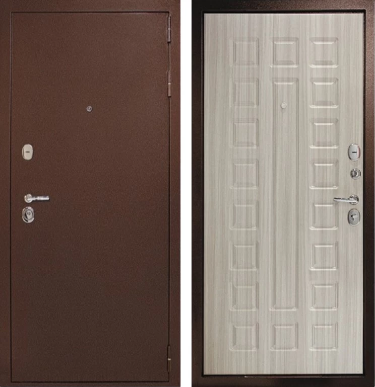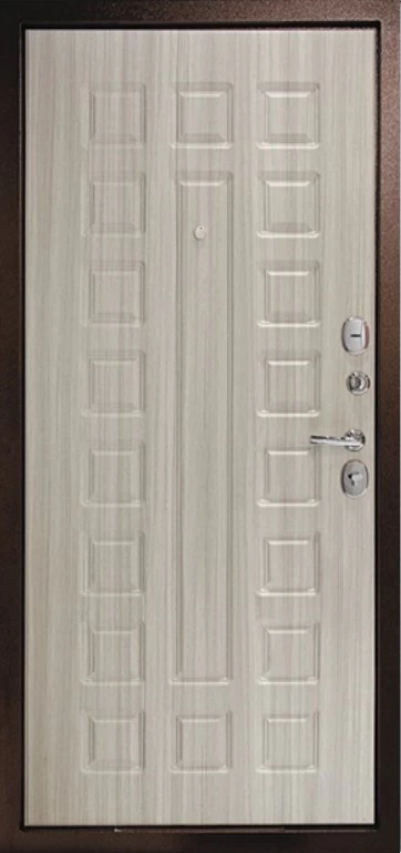 Надежная входная Дверь Рубикон 1 Медь Сандал белый премиум класса по цене 32 951 руб. Большая толщина стали защитит от проникновения в ваш дом, квартиру или коттедж. Используется очень качественная фурнитура: замки, цилиндры, ручки, защелки. Покрытие и отделка двери изготовлено под внимательным контролем производителя. Дверь имеет долгий срок службы и гарантию.