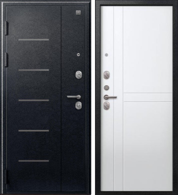 Надежная входная Дверь V-06 Черный муар - Белый премиум класса по цене 38 981 руб. Большая толщина стали защитит от проникновения в ваш дом, квартиру или коттедж. Используется очень качественная фурнитура: замки, цилиндры, ручки, защелки. Покрытие и отделка двери изготовлено под внимательным контролем производителя. Дверь имеет долгий срок службы и гарантию.