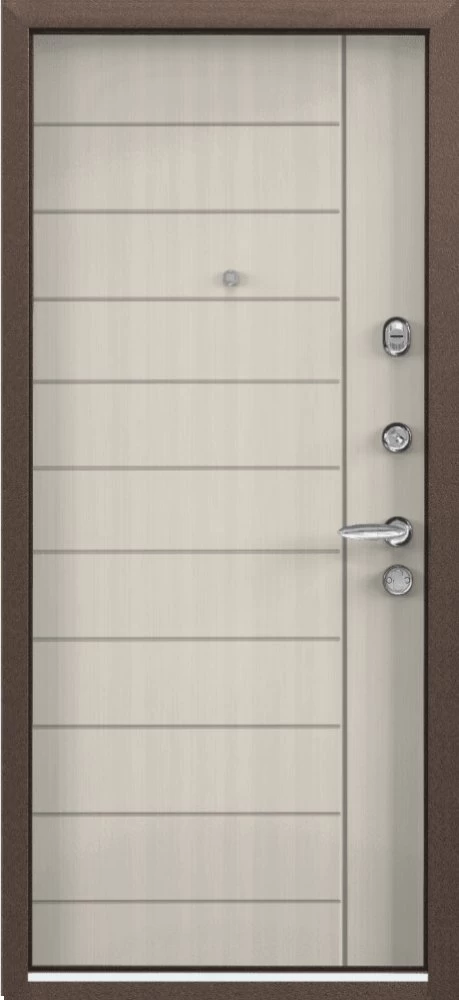 Надежная входная Дверь Цербер 3К Горизонт Латте Сменная панель премиум класса по цене 42 631 руб. Большая толщина стали защитит от проникновения в ваш дом, квартиру или коттедж. Используется очень качественная фурнитура: замки, цилиндры, ручки, защелки. Покрытие и отделка двери изготовлено под внимательным контролем производителя. Дверь имеет долгий срок службы и гарантию.